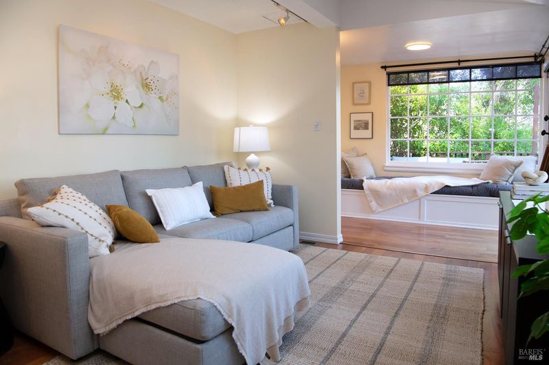 Welcome to 138 Miramar Avenue, nestled in the hills of San Rafael, in the graceful hamlet of Gerstle Park, you will find this one-of-a-kind oasis that you have been dreaming of. Opening the gate of this very private and enchanting property, this home will speak to your soul. You will be immediately drawn to the stunning and expansive water views of the bay as well as the lovingly cared for trees and flowers that surround the house and property. The home has a large deck on the main floor for outdoor living and entertaining as well as two tiled porches. There are nine mature fruit trees including fig, lemon, orange, tangerine, pear, plum and three apple trees. There are two raised beds ready for Spring planting as well as Wisteria, Jasmine Hydrangeas, Geraniums and Bougainvillea flowers. Spring begins with the scent of Orange blossoms followed by Jasmine and then comes the Wisteria. You will enjoy meandering through the walkways and gardens savoring the sights and smells of the lovely gardens. The house itself is absolutely charming. It has an open floor plan with a light filled living and dining area facing the beautiful outdoor space. There is a large sunny kitchen with plenty of storage and a Wedgewood stove, a guest room and bathroom on the main floor. Off of the kitchen is a laundry room leading to a private outdoor tiled patio. The top floor has the primary bedroom and en suite bathroom with sweeping bay views even from the bathroom. What an inspiring way to wake up each morning! The bottom floor has a very large bedroom with an en suite bathroom, kitchette with eating area and entrance to the lovely brick patio. It is also accessible from the inside of the home. There is a detached one car garage with storage room underneath. Quaint extra building...yoga, crafts, storage...your choice!