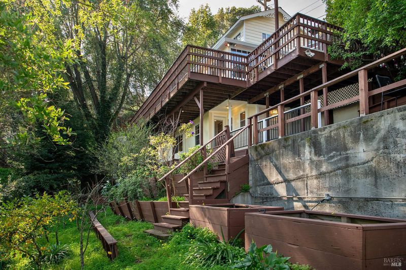 Nestled in the hills of San Rafael, in the graceful hamlet of Gerstle Park, you will find the one-of-a-kind oasis that you have been dreaming of. This house itself is absolutely charming. 3/3 with a possibility of a 2/2 with a 1/1 downstairs with separate entry. Open floor plan with a large sunny kitchen with plenty of storage and a Wedgewood stove. Top floor has the primary bedroom and en suite bathroom with sweeping bay views. One car garage, storage room, and an separate building for your hobbies or office. Nine fruit trees, two raised beds ready for Spring planting. This is the gem you have been dreaming of, Come by and take a look!