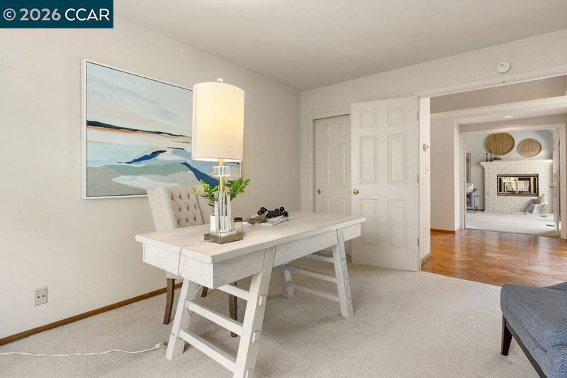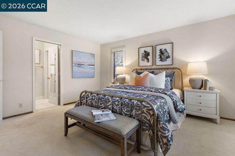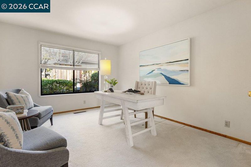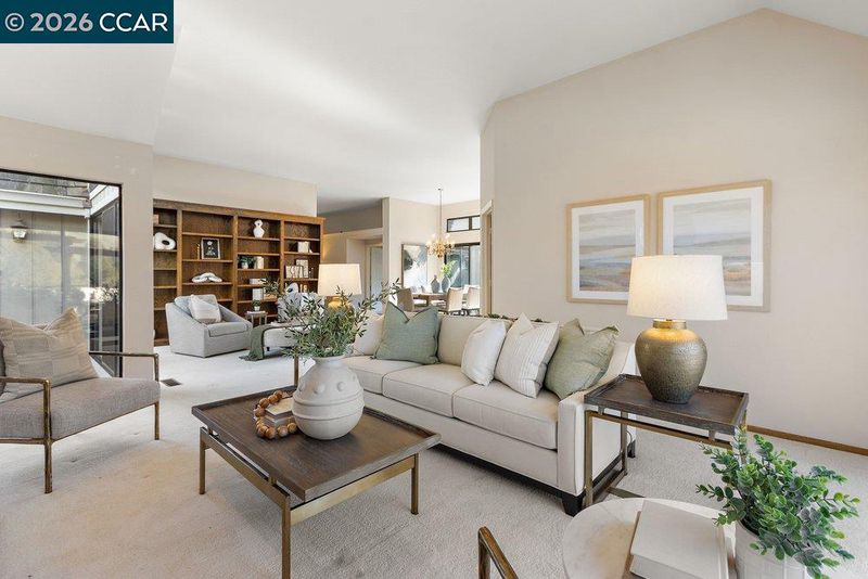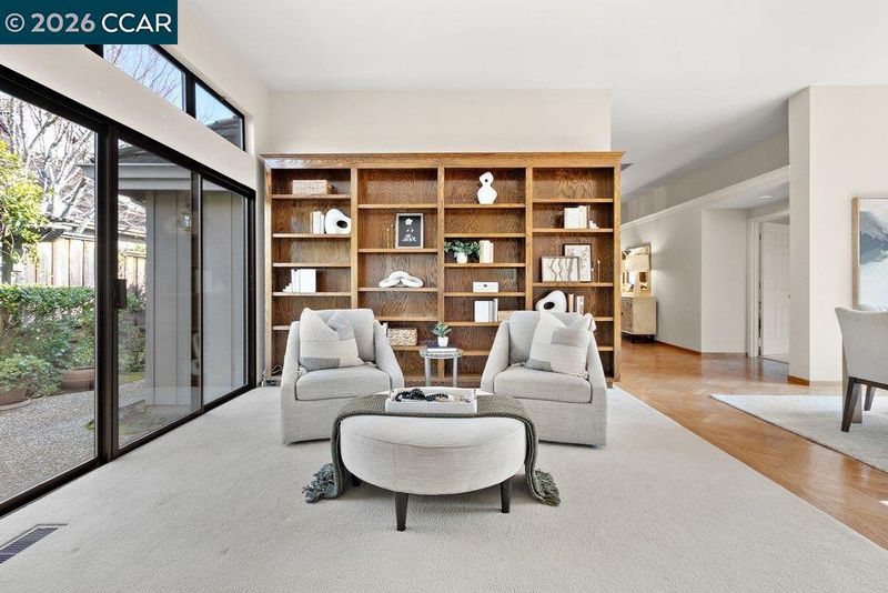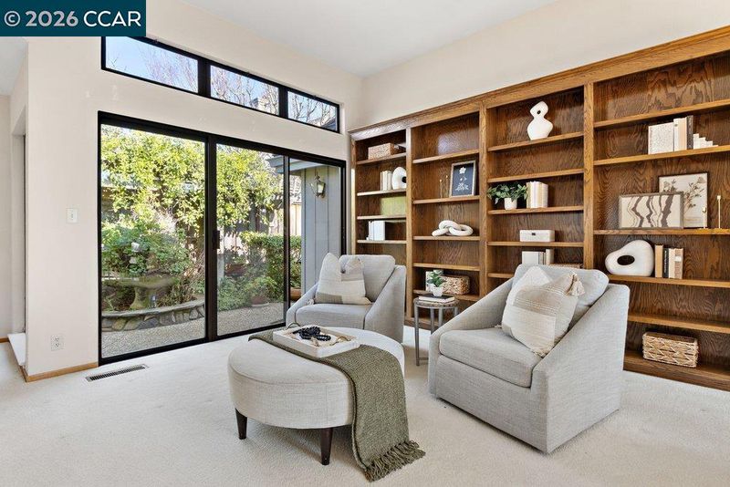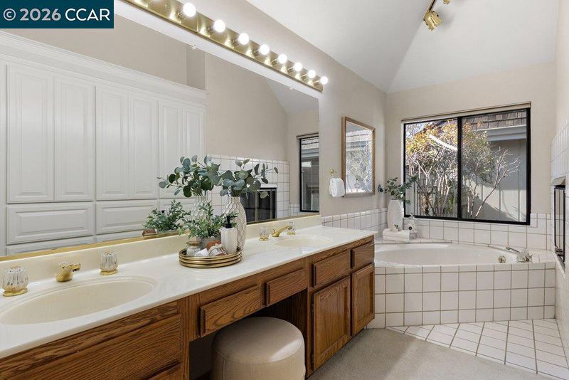 Bryan Terrace w/Views – all living spaces are drenched in natural light and showcase hdwd floors, vaulted ceilings, recessed lighting, carpeted bdrms, and plantation shutters. The spacious living room, dining area and addl space for library seating, or music niche adjacent to a wall of built-ins are featured. A gas fireplace anchors the living room area. Each unique space features a sliding glass door to outdoor gardens. The chef’s kitchen features granite tile counters, an island and upgrade appliances. The kitchen is open to a casual dining nook and spacious family room that features a fireplace with a brick surround with a slider to the backyard. 3 bdrms and 2.5 bathrooms include a primary suite behind a double door entry with a vaulted ceiling and a dual-side fireplace it shares with the en suite. 2 addl bdrms include one with a front-facing window and en suite with a tub/shower combination, and a bdrm with double door entry that would make an ideal office. The ultra-private backyard offers sunset views, arbors, and multiple venues to entertain. Community pool and tennis/pickle ball court featured. Open house Feb 14-15; 1-4pm