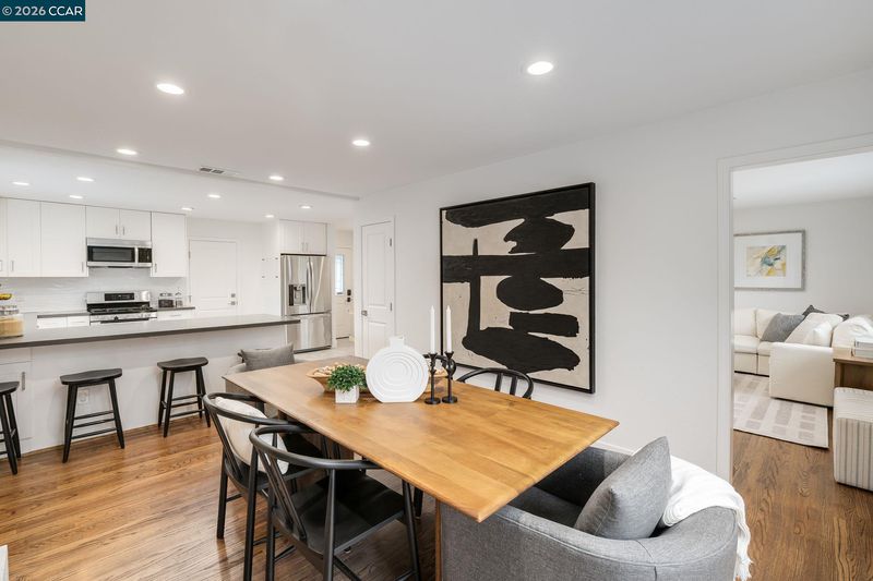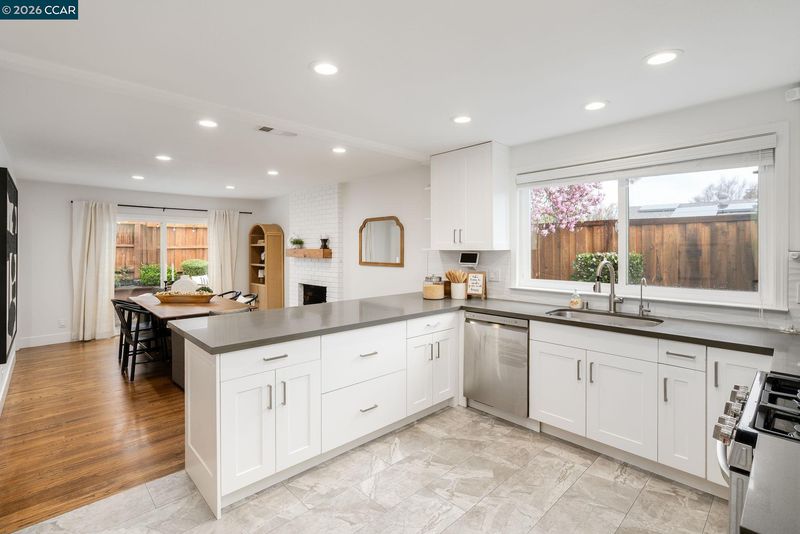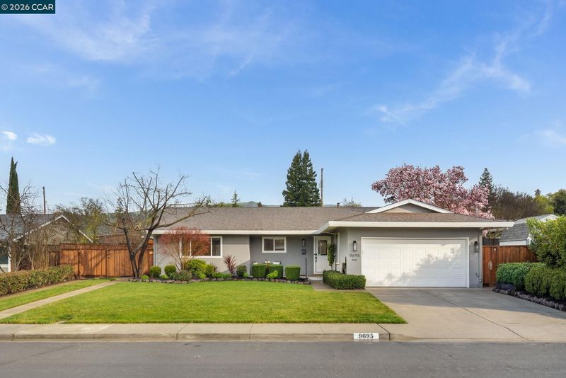 Tucked into one of San Ramon’s most connected neighborhoods, this Northeast-facing single-story rancher offers a warm, welcoming feel from the moment you arrive. A lush front lawn & covered patio set the tone, while natural light highlights stained hardwood floors & a calm, neutral palette throughout. The open kitchen sits at the heart of the home, w/ white shaker cabinetry w/ soft-close drawers, stone countertops, stainless steel appliances, a pantry, & a breakfast bar that invites gathering. It flows seamlessly into the dining area, anchored by a brick hearth fireplace & sliding glass doors that open to the backyard. The living/family room includes recessed lighting & a built-in entertainment system. The primary suite offers mirrored closet doors & an ensuite bath w/ tile flooring, a stall shower, & stone vanity. 3 additional bedrooms are generously sized, including one w/ direct backyard access. Outside, the backyard features a wrap-around paver patio, lush lawn, lemon & apple trees, & a large side yard w/ RV/boat parking. Additional features include a newer composition roof (2022) & two-car garage. Just minutes from Pine Valley Middle School & Boone Acres Park, w/ quick access to I-680 & the Iron Horse Trail, this home offers comfort, flexibility, & everyday convenience.