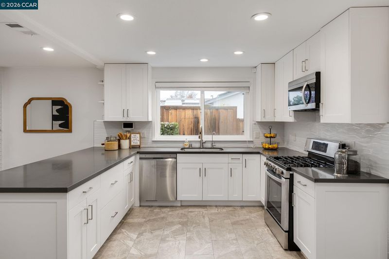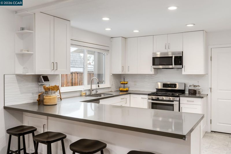 - Gas Range, Microwave, Refrigerator, Gas Water Heater, Breakfast Bar, Counter - Solid Surface, Eat-in Kitchen, Disposal, Gas Range/Cooktop, Updated Kitchen