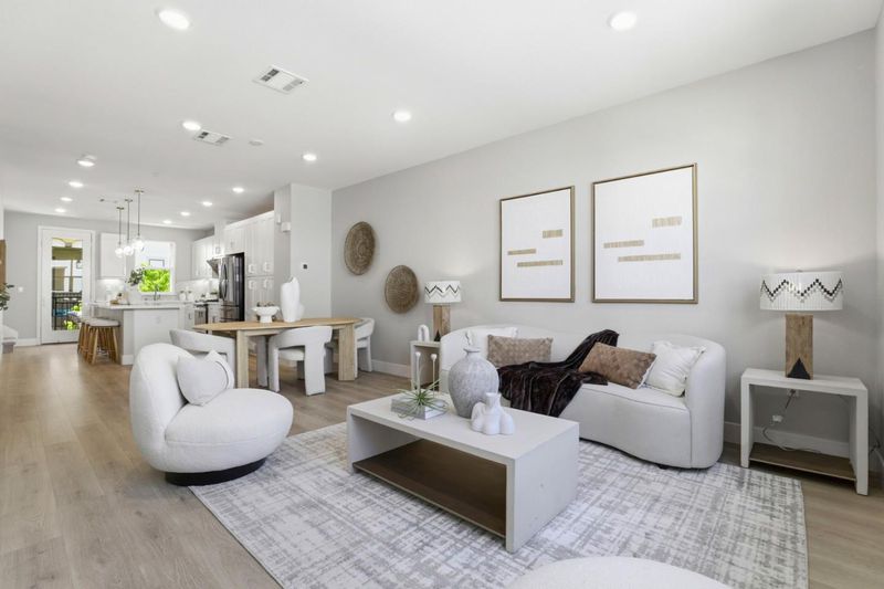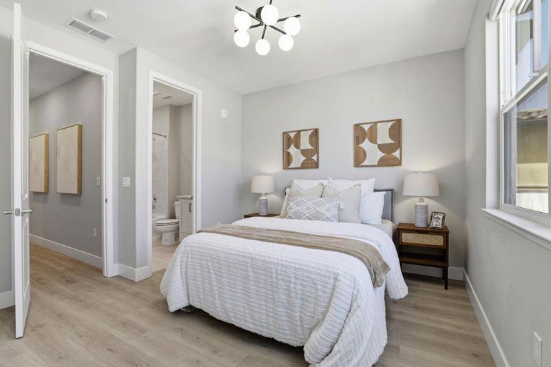 Location! Location! Location! Stunning 6-year-new contemporary townhome by Taylor Morrison with $32K+ in premium builder upgrades including Quartz counters, hardwood flooring, and upgraded cabinets. The functional great room layout features a spacious living area, gourmet kitchen with oversized island, bar seating, updated quartz countertops, gas stove, and open-concept dining. Modern hard-surface flooring flows throughout the entire home (stairs excepted), offering a sleek, low-maintenance aesthetic. The cozy primary suite includes a walk-in closet and dual-sink bathroom with ample storage. The second bedroom has its own en-suite ideal for guests. Enjoy energy efficiency with dual-zone thermostats, a whole-house water softening system and a tankless water heater, plus abundant natural light throughout. Attached 2-car garage with epoxy flooring. Exceptional craftsmanship and high-end finishes throughout. Unbeatable location - walking distance to restaurants and shops, minutes from Downtown Sunnyvale, and close to major tech employers like Apple, Google, Amazon, and LinkedIn. Easy access to Highways 101, 237, and Central Expressway for seamless commuting. Residents also enjoy access to the community clubhouse, perfect for hosting events. Do not miss this modern Silicon Valley gem!