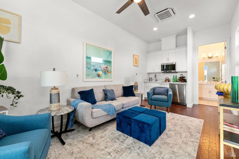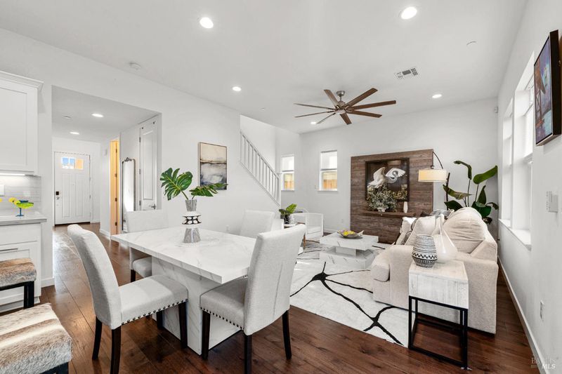 Located in the newly completed Riverbend community (2023), this meticulously maintained 3-bedroom, 2.5-bath residence offers approximately 1,800 sq ft of thoughtfully upgraded living space, along with a 278 sq ft attached ADU, currently the only home available in the development. Designed well beyond standard builder offerings, the home showcases significant upgrades and custom finishes throughout. The gourmet kitchen features quartz countertops, custom tilework, induction cooking, and carefully selected enhancements that elevate both everyday functionality and entertaining. Energy efficiency and long-term savings are built in with a fully OWNED solar system on NEM 2.0, providing substantially more favorable energy credits than current NEM 3.0 programs. A finished garage, extended driveway and walkway, and two electric vehicle charging outlets add convenience and flexibility. The professionally designed, low-maintenance backyard was created for privacy and simple outdoor living, offering custom hardscape and a clean feel without the upkeep. Inside, semi-custom closet systems, heavy-duty garage storage racks, and permanent concrete walkways surrounding the home reflect the level of detail and care invested throughout. Meticulously maintained and cleaned weekly, this home combines modern efficiency, completed upgrades, and true move-in readiness, without the added expense or wait of starting from scratch.