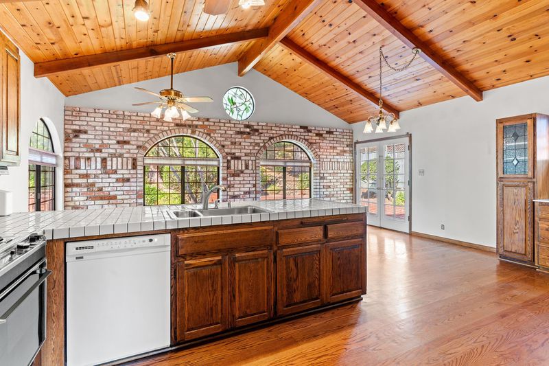 Spacious, well-maintained home with classic upgrades that still show beautifully. It offers a generous living area, a great layout, and a strong curb appeal throughout. A dual-purpose dining and living room feature a classic wood mantel fireplace, wood trim, and open, flowing layout perfect for both entertaining and after everyday living. The adjoining living space boasts an elegant full-wall fireplace mantel with custom built-in shelving and cabinetry. The warm and inviting kitchen features vaulted wood-beam ceilings, hardwood floors, tile countertops, custom wood cabinetry, and abundant natural light and its open layout is highlighted by a stunning brick accent wall and arched windows. Walk out to a private, resort-style backyard featuring a swimming pool, expansive patio, and mature landscaping. Terraced brick planters and serene hillside views create an outdoor retreat, ideal for relaxing, entertaining, and outdoor living. A versatile downstairs bonus room featuring a half-bath with direct access to the backyard. Upstairs living includes a spacious primary suite with en-suite bathroom plus two additional bedrooms. Located in a very desirable neighborhood close to schools, freeway access, BART, and vibrant downtown.