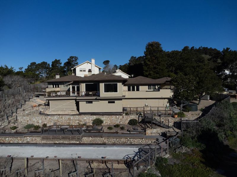 Sweeping panoramic views of the Pacific Ocean, Point Lobos, and the rolling hills of Carmel Valley are yours at this luxury coastal estate. From the moment you enter through the Carmel stone courtyard, the home unfolds as a living canvas of ocean blues and sun-washed hills, inviting nature in at every turn. Designed for effortless indoor-outdoor living, the residence offers a state-of-the-art kitchen, elegant formal dining, a serene & private primary suite, plus thoughtfully separated family & guest spaces. A three-car garage awaits the enthusiast, while a lower-level wine room, bocce court & multiple gathering places provide ample space for life's pleasures. Spend golden afternoons on one of the many decks, savoring estate-grown Pinot Noir or Chardonnay crafted from your own private vineyard. Nourished by 7 cisterns, the vineyard & grounds thrive with ease. This is an opportunity not to be missed. Home to one of the most beautiful ocean views on the Monterey Peninsula, and minutes to the village of Carmel-by-the-Sea, the beach, shopping, golf, & the glorious Peninsula lifestyle.