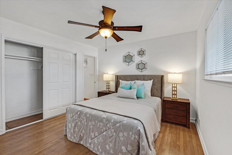 Discover this beautifully maintained single-story ranch-style 3-bedroom, 2-bath home, ideally located in the heart of the South Park area. Tucked away at the end of a quiet court, the home offers 1,296 sq ft of well-designed living space on a 6,500 sq ft lot. The open-concept layout features an expansive living and dining area centered around a cozy fireplace—perfect for everyday living and entertaining. Hardwood, parquet, and laminate flooring run throughout, adding warmth and character. The kitchen blends style with functionality, while the private backyard provides a peaceful retreat. Enjoy morning coffee or evening downtime in the charming front courtyard. Lovingly cared for and truly move-in ready, this home is ready for its next chapter.