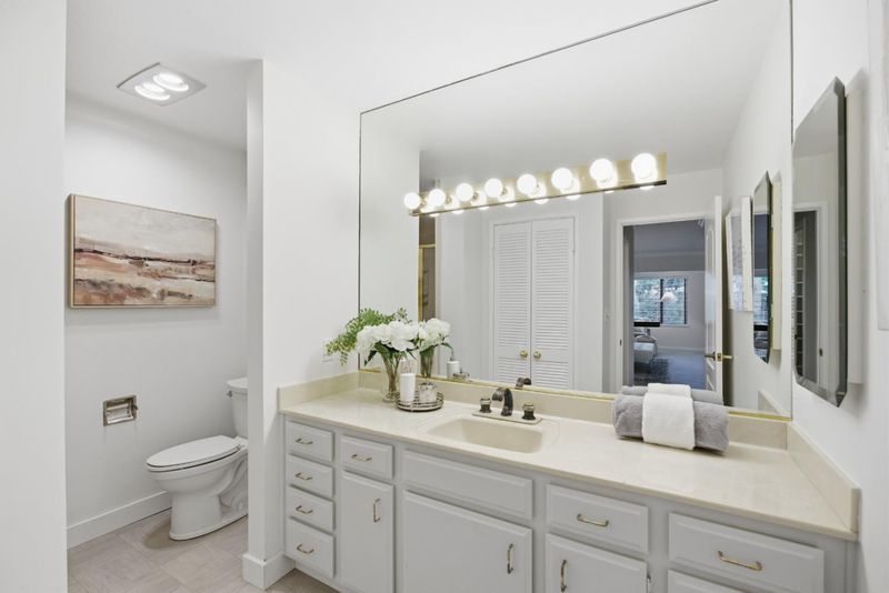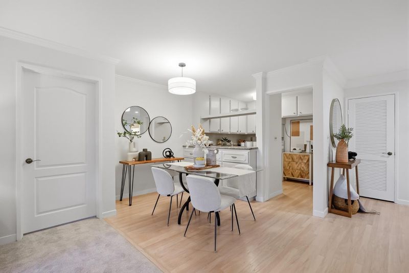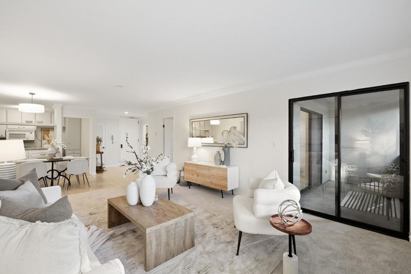 Unit E 102-Located in the highly desirable Menlo Commons gated 55+ community, this beautifully updated first-floor residence offers comfort, convenience, and easy living. The thoughtfully designed floor plan features two spacious bedrooms and two full baths, ideal for everyday living or hosting guests. The updated kitchen showcases refinished wood flooring, stone countertops, and abundant cabinetry, opening to the dining area and inviting living room. A large picture window fills the space with natural light, while a sliding glass door leads to a private balcony, perfect for relaxing outdoors. The oversized primary suite offers a generous walk-in closet, extra-large vanity, and stall shower designed for comfort and functionality. Fresh interior paint, new carpet, luxury vinyl plank flooring, and in-unit laundry add to the move-in ready appeal. Menlo Commons offers secured entry, elevators, community pool, clubhouse, and fitness center, supporting an active and social lifestyle. Ideally located near Stanford Shopping Center, Stanford Hospital, Stanford University, downtown Menlo Park and Palo Alto, with convenient access to Highway 280, this home blends tranquility with everyday convenience.