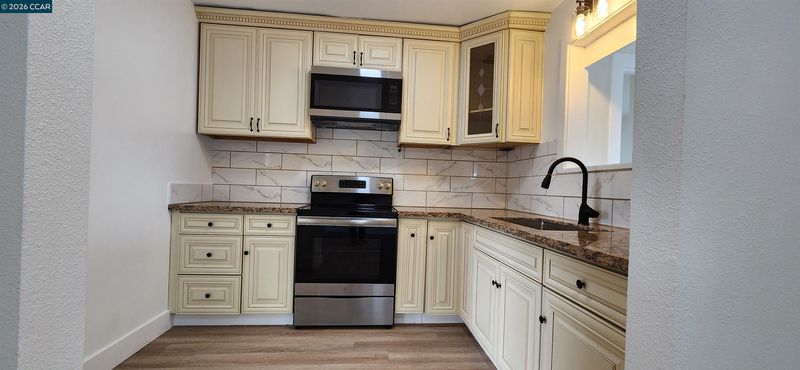 - Electric Range, Gas Range, Microwave, Free-Standing Range, Gas Water Heater, 220 Volt Outlet, Counter - Solid Surface, Eat-in Kitchen, Electric Range/Cooktop, Gas Range/Cooktop, Range/Oven Free Standing, Updated Kitchen