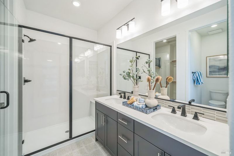- Double Sinks, Low-Flow Toilet(s), Shower Stall(s)