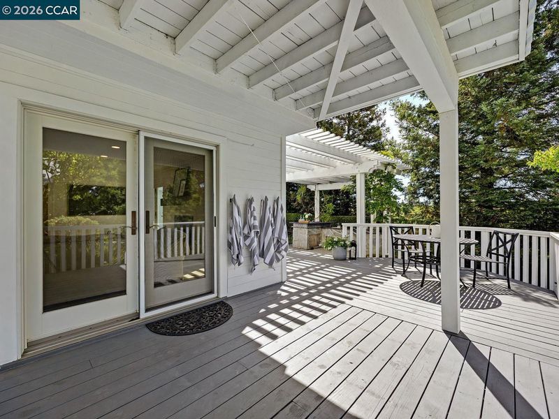 Tucked at the quiet end of a cul-de-sac in the gated Blackhawk Country Club, this home offers refined living on a private .60-acre lot. This beautifully updated home blends comfort, elegance & thoughtful design throughout. Step inside to discover a highly functional floor plan w/ a full bedroom & bath downstairs, ideal for guests or an office. The home has been completely updated, creating a warm & sophisticated atmosphere filled w/ natural light. The recently renovated chef’s kitchen is a centerpiece, w/ custom cabinetry & countertops, RH finishes, island, all Miele appliances (including built-in coffee maker) & showstopper custom La Cornue stove/oven. Walk in pantry features steam oven,microwave & storage.The spacious family room is designed for everyday living & entertaining, complete w/ a built-in wet bar, fireplace & French doors that open seamlessly to to the wraparound veranda, creating the perfect indoor-outdoor flow. Upstairs, the primary suite offers incredible views of the rolling hills & backyard. Two add't bedrooms share a jack-and-jill bathroom. The backyard, designed by renowned landscape architect Peter Koenig, is truly spectacular. This private retreat features a pool,spa,fire pit, lush gardens, putting green, built-in BBQ/outdoor kitchen-ideal for entertaining.