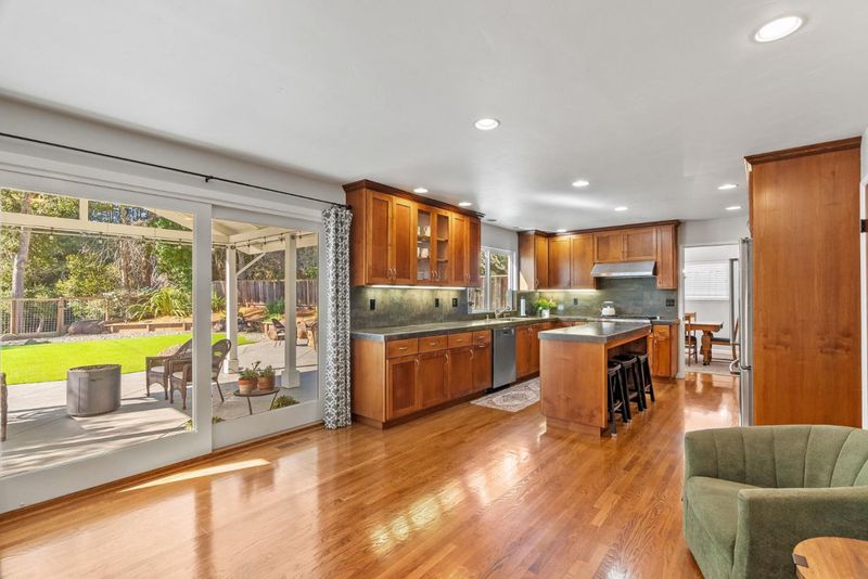 Located in the highly sought-after Vienna Woods community of Aptos, 1699 Cheryl Way offers a rare blend of space, privacy, and indoor-outdoor living, just minutes from Nisene Marks State Park, Seacliff State Beach, and the conveniences of Aptos and Soquel. This well-designed home features four bedrooms upstairs, two full bathrooms, and a convenient half bath on the main level. The spacious living room with a cozy fireplace flows into the formal dining area and large kitchen, which opens seamlessly to the family/media roomcreating an ideal layout for everyday living and entertaining. The kitchen offers abundant storage and a breakfast bar. Outdoors, the recently updated hardscape provides a low-maintenance retreat with turf, low-water landscaping, and a pergola, perfect for gatherings, play, or quiet relaxation, with privacy and peaceful tree-lined views beyond the backyard. Additional highlights include room for boat or RV storage and solar panels for added efficiency. Set in a welcoming neighborhood close to shopping, dining, and the Cabrillo College Farmers Market, this home captures the best of Santa Cruz living.