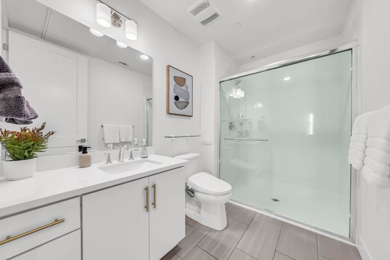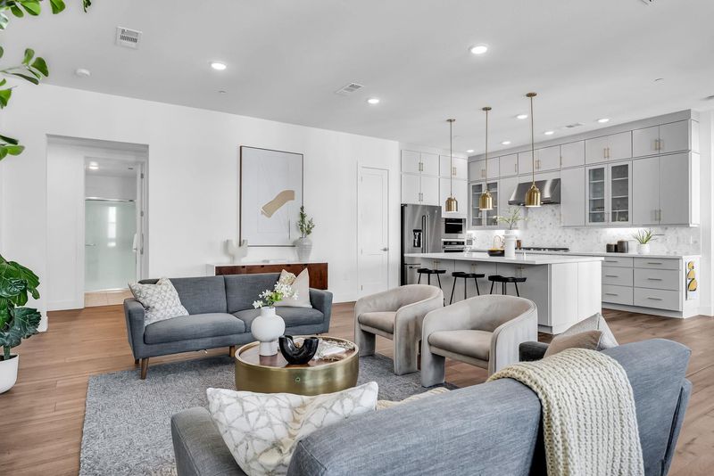 Newly built in 2022 a beautiful modern condo with highly upgraded kitchen cabinets, countertops, backsplash, flooring and huge outdoor patio/balcony for BBQs, and lounging. Very spacious open concept kitchen, dining room, and living room with an office nook, the perfect size for remote working. The primary bedroom is a private, spacious, serene hideaway with a custom closet, dual sink, en-suite bathrooms. Side by side 2 car garage. Metro crossing located across Warm Springs Bart Station. Right outside the building's door, you will find a park, plenty of guest parking, and a beautifully cared for community with a pool.