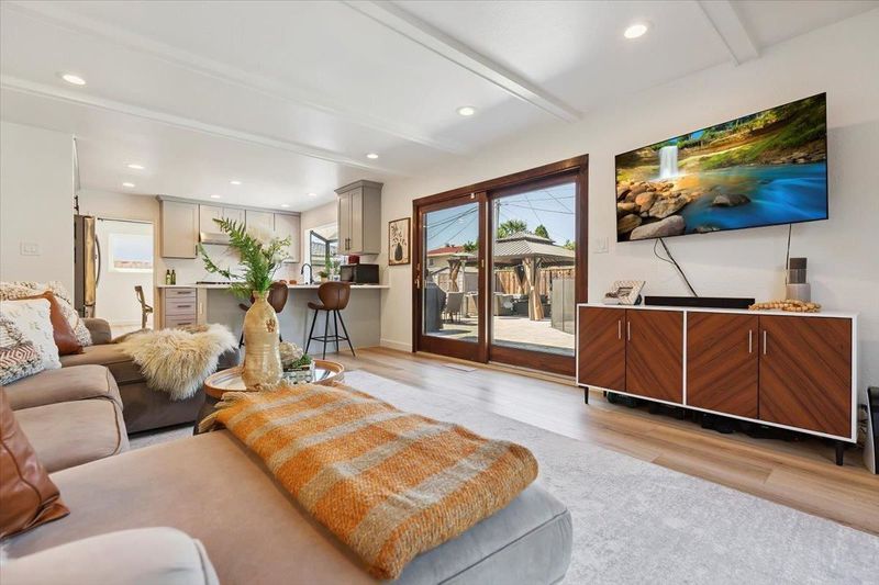 This is the one you've been waiting for! This beautifully updated home effortlessly blends modern design with eclectic charm, creating a warm and inviting space you'll love coming home to. With 4 spacious bedrooms and 2 full baths upstairs, plus a versatile bonus bedroom or office and a half bath downstairs, there's plenty of room for everyone to spread out and thrive. The remodeled kitchen is a dream come true for any chef, featuring double ovens, a gas cooktop, and endless storage, with natural light streaming through large windows and elegant wood-framed glass doors. Cozy up by the living room fireplace or host lively movie marathons in the expansive family room that flows seamlessly into the open kitchen. Step outside and prepare to fall in love with your very own private retreat. A sparkling in-ground pool beckons for summer fun, while the generously sized side yard-with vehicle access-offers space for an RV, boat, or extra parking. And with solar, you'll enjoy both energy savings and peace of mind. Nestled in a quiet neighborhood, this move-in-ready gem truly has it all.