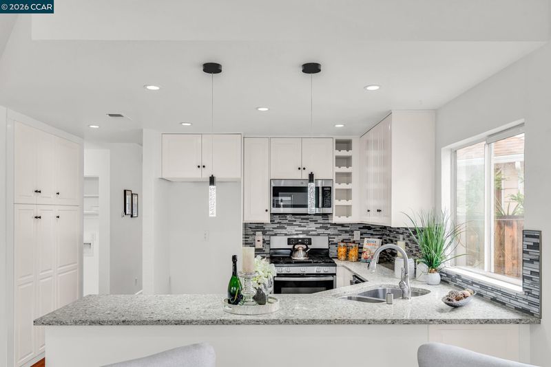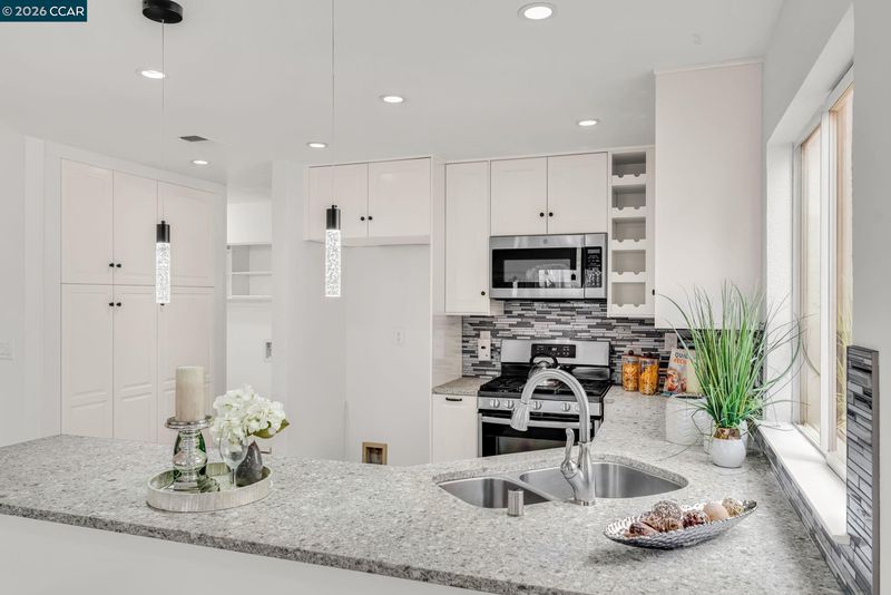 - Dishwasher, Gas Range, Gas Water Heater, Breakfast Nook, Counter - Solid Surface, Stone Counters, Eat-in Kitchen, Gas Range/Cooktop, Pantry, Updated Kitchen
