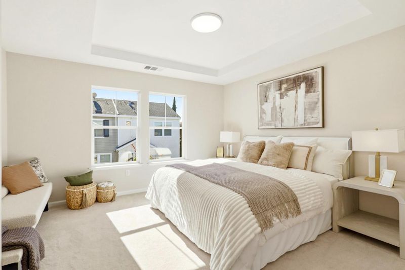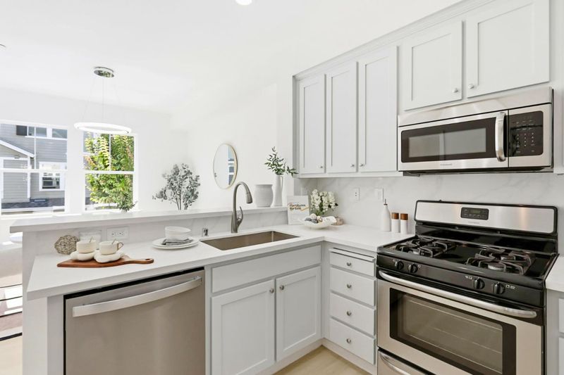 Immaculate! Modern PUD townhouse with an unbeatable $90 HOA! Nestled quietly at the back of the complex, this home offers exceptional privacy and stylish upgrades throughout, including a ground-floor suite ideal for guests or extended family. The airy main level features an expansive living room, open dining area, and an updated kitchen with chic gray cabinetry, new sleek quartz countertops, and a new sink. Upstairs, two spacious en-suites provide comfort and retreat. Upgrades include new flooring, recessed lighting, dual-pane windows, dual-zone AC, a tankless water heater, and an insulated garage door. Smart features include PIR motion-sensor lighting and Alexa-enabled controls, with remote access to temperature, lighting, water heating, and the front and garage doors for effortless comfort and efficiency. A private backyard with a mature avocado tree offers a peaceful retreat, while a lemon tree and landscaped front yard create a warm welcome. Ideally located near major tech employers such as Apple, Google, Meta, LinkedIn, Amazon, NVIDIA, and more, with easy access to top schools, parks, Costco, Downtown Sunnyvale, and commute routes including 101, 237, 85, Central & Lawrence Expwy, and Caltrain. A rare find that blends privacy, smart living, and exceptional value!