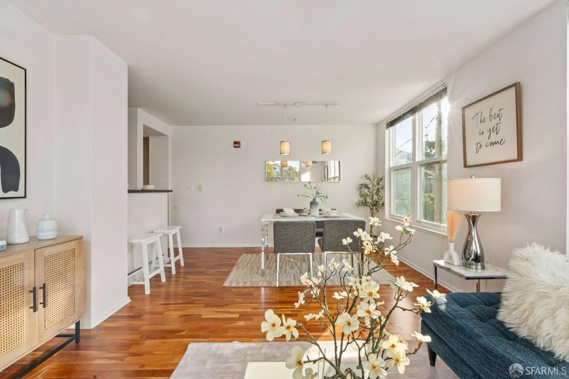 Exceptional corner residence at Oceanview Terrace offering 2 bedrooms, 2 bathrooms, and 1,020 sq ft of bright, modern living. The southwest-facing living room is filled with natural light, complemented by hardwood floors, expansive windows, and a private balcony. Desirable split-bedroom floor plan with bedrooms on opposite sides for added privacy. The open chef's kitchen features granite countertops, stainless steel appliances, and ample cabinetry. Spacious primary suite with double-sink vanity and shower over tub, plus in-unit washer and dryer. Includes 1 deeded parking space. HOA underground parking has EV charging available. Ideally located above shops, banks, and H-Mart, with easy access to Daly City BART and major freeways for convenient commuting to San Francisco and the Peninsula.