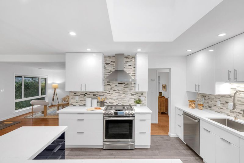 - Countertop - Quartz, Dishwasher, Garbage Disposal, Hood Over Range, Ice Maker, Microwave, Oven - Gas, Oven Range, Pantry, Refrigerator, Skylight, Wine Refrigerator