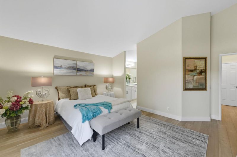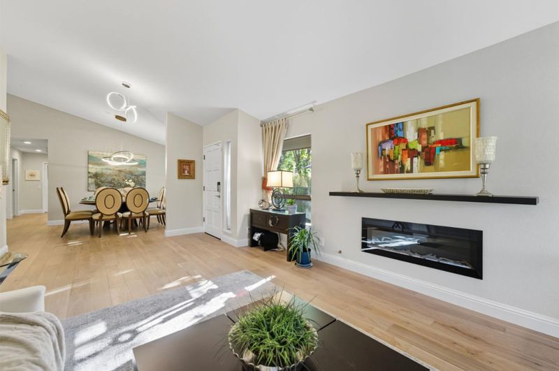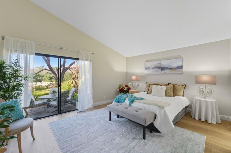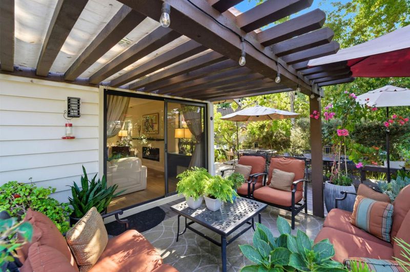 Elegant Garden Retreat with Modern Finishes. Tucked away on a quiet cul-de-sac, this beautifully updated home offers rare privacy with no front or rear neighbors and tranquil hill views. Surrounded by mature trees and drought-tolerant landscape. It combined natural serenity with modern living. Inside, enjoy uniform wood floors, a chef's kitchen with leathered marble island, Taj Mahal quartzite countertops, Italian glass backsplash, and high-end stainless steel appliances. The open living and dining areas feature a modern electric fireplace and sliding doors to an a covered patio, ideal for year- round entertainment. the primary suite includes a spa like bathroom with linear-drain shower, built-in seat, and quite Bluetooth fan system. Smart home feature include a digital door lock, Nest thermostat, and smart landscape lighting. A new furnace (2023) and oversized two car garage with golf cart space complete this stylish and tranquil retreat.
