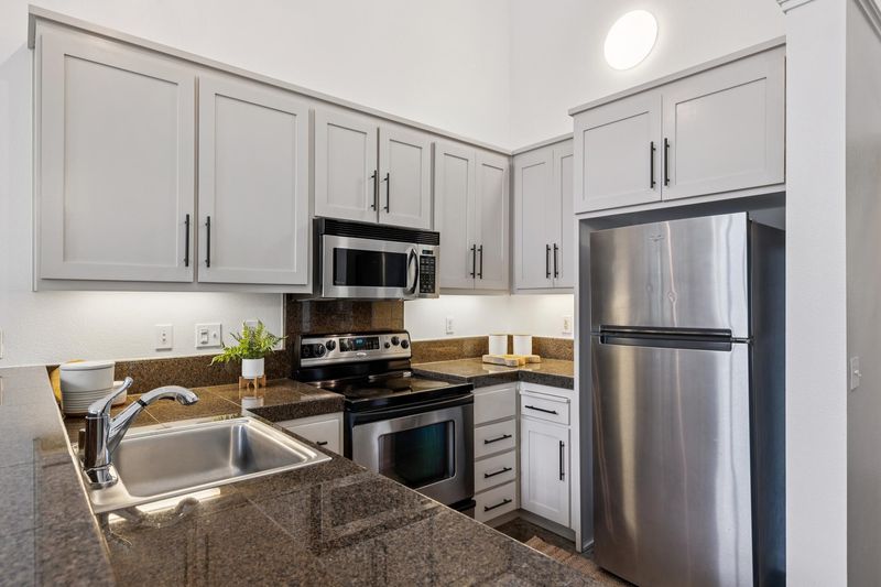 - Dishwasher, Electric Range, Microwave, Refrigerator, Dryer, Washer, Breakfast Bar, Stone Counters, Electric Range/Cooktop