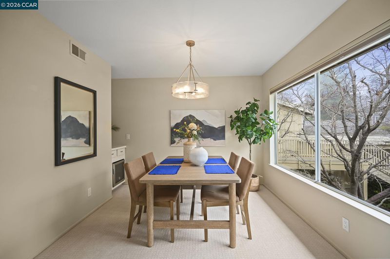 Welcome to the Sierra Model, where modern aesthetics meet comfortable living in this charming home. Step inside to discover an open-concept layout with soaring vaulted ceilings in the living room that bathes the space in natural light. The dining room has a beverage refrigerator at dry bar. The kitchen delights with fresh new cabinets and appliances, while both fully renovated bathrooms pamper you with spacious walk-in showers and custom tile work. Two generously sized bedrooms provide peaceful retreats at day's end. The open deck is a true highlight, offering sun shades and lovely views of Rossmoor's rolling hills, with convenient access from the kitchen, living room, and primary bedroom. The primary suite features dual sinks and a spacious walk-in closet for all your storage needs. An inside laundry room with full-size, side-by-side washer and dryer makes laundry day effortless, and convenient parking awaits at the bottom of the front stairs. This home is move-in ready and waiting for you to start enjoying everything Rossmoor has to offer!