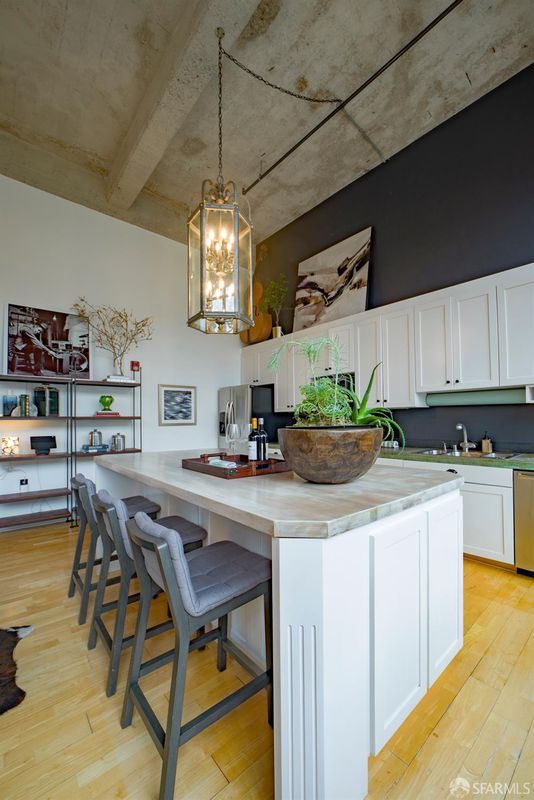 A true brick-and-timber loft in San Francisco's iconic Stagehouse Lofts, this residence delivers scale, volume, and authentic industrial character the moment you walk in. Soaring ceilings, expansive concrete walls, and dramatic factory-style windows flood the space with natural light and create a striking architectural backdrop. The open floor plan offers exceptional flexibility with two bedrooms and two full baths, plus generously proportioned living spaces designed for both everyday living and entertaining. The kitchen, complete with a custom island, anchors the main living and dining areas and seamlessly connects the entire space. This is one of San Francisco's best conversion lofts bold, refined, and full of personality. In-unit laundry, one-car parking and Google Fiber (WebPass) provide modern convenience. HOA dues include heat, water, trash, and internet. This location offers immediate access to some of the city's best dining, shopping, and nightlife, along with easy Muni, BART, and Highway 101/280 connectivity. A rare opportunity to own an authentic Manhattan-style loft in one of San Francisco's most vibrant corridors.