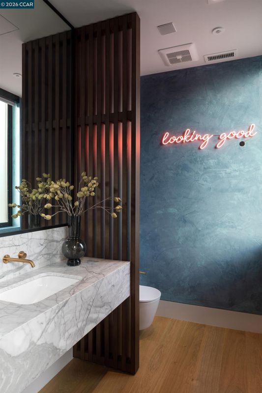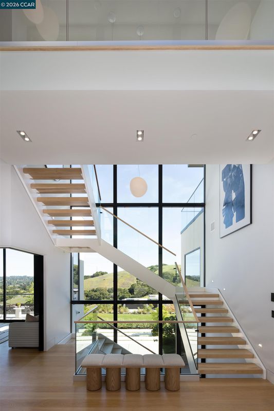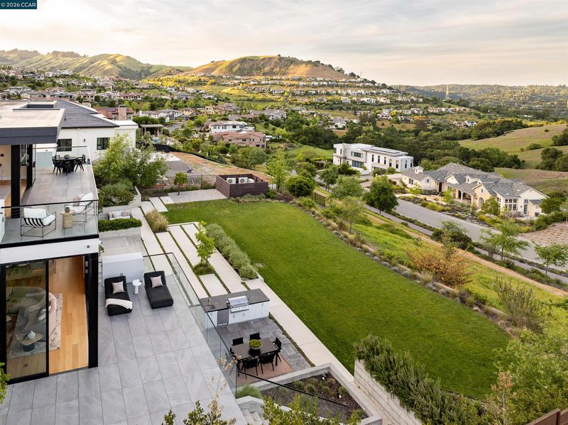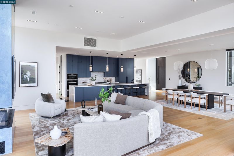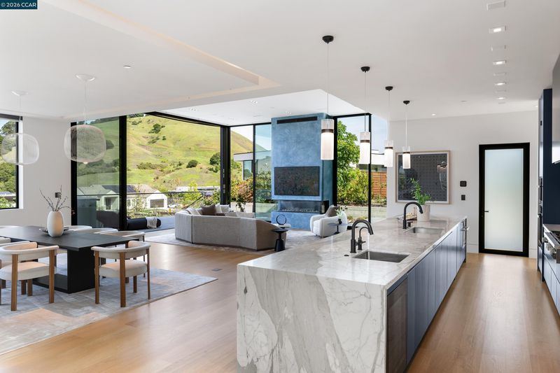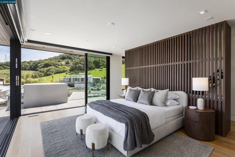 83 Dairy Creek Lane sits on one of Wilder’s premier lots, pairing bold architecture, warm design, and sweeping hillside views. A pivot door opens to a 3-story steel-and-oak staircase, soaring ceilings, and Fleetwood glass that flood the great room with light and frame the landscape. White oak floors, custom lighting, and a three-sided fireplace anchor the home. The chef’s kitchen centers on a 22’ Calacatta marble island with seating for 6, with Miele and Thermador appliances, hidden cabinetry, and a walk-in pantry. A corner office, mudroom, and storage rooms keep life organized. Upstairs, the primary suite is a private retreat, with twin walk-in closets, spa bath with heated floors, soaking tub, and a private terrace capturing Wilder’s best views. Additional bedrooms, a dual-washer laundry, and a lower-level suite—including rec room, wet bar, playroom, and Equinox-inspired gym with steam shower—support everyday and large-scale entertaining. Multiple terraces, a broad lawn, and native landscaping blur indoors and out—suited to kids’ play, evenings by the outdoor fireplace, or parties spilling into the piazza-like rear yard. A Savant system, Lutron lighting, integrated speakers, solar with Tesla Powerwalls, and backup generator keep the home running quietly—true peace of mind.