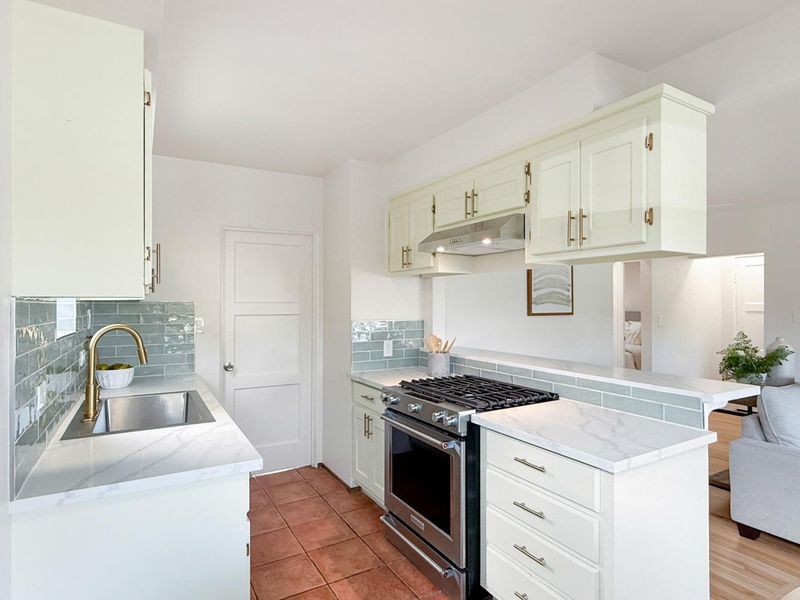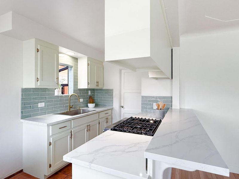 - Countertop - Quartz, Hood Over Range, Oven Range - Built-In