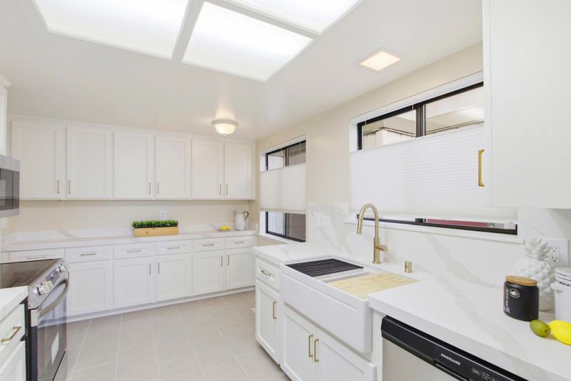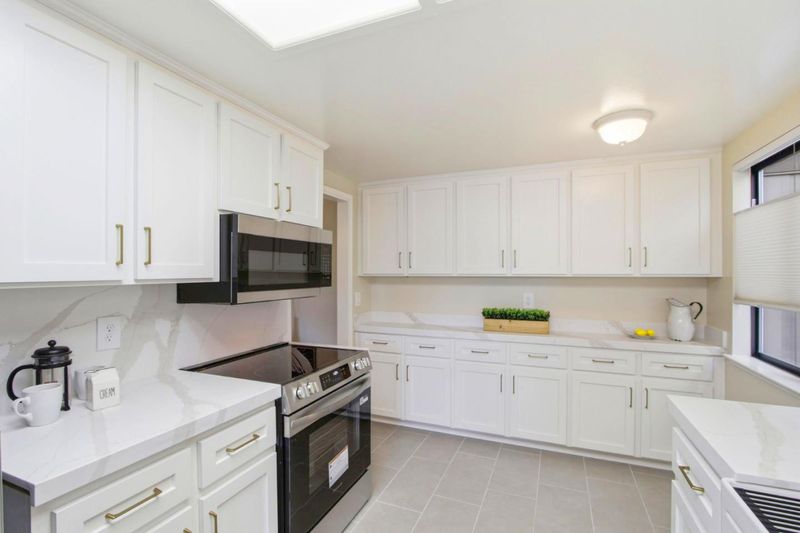 - 220 Volt Outlet, Countertop - Quartz, Dishwasher, Exhaust Fan, Garbage Disposal, Microwave, Oven Range - Electric, Refrigerator