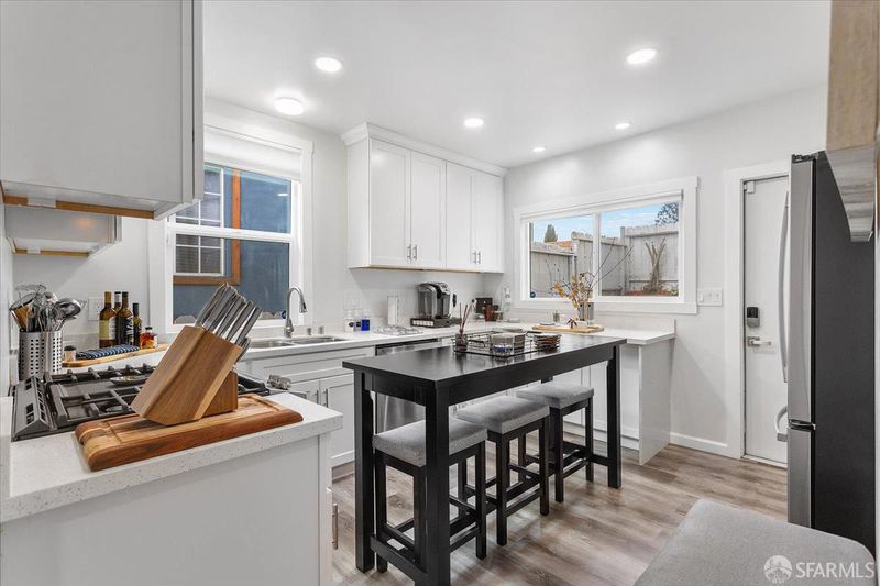Step inside this light-filled, fully dialed-in single-family home and feel your shoulders dropbecause the work is already done. Behind the fresh gray faade and detached garage, you'll find about 1,000 square feet of smart, efficient living where every inch has been updated for how we live now. The living room is all about vibes: oversized front window, sleek recessed lighting, original fireplace surround with built-ins, and clean modern floors that run throughout. It's the perfect backdrop for your Netflix nights, game days, and everyone come over'' group chats. The chef's kitchen is the showstopper. Crisp white cabinetry, quartz-style counters, stainless appliances, gas range, and a long eat-in island where friends can sip while you cook. Direct access to the backyard means the party flows outsidemorning coffee on the patio, summer dinners under string lights, and plenty of space to re-imagine the yard with planters, turf, or a future hot tub. The layout is simple and smart. Hang out up front, sleep in the back. Bedrooms offer quiet retreats, one with sliding doors to the yard, inviting the morning light in. The second, across the hall and enough space for a home office, guests, or that Peloton you swear you'll use. What you won't be doing here: replacing big-ticket items. There is a new roof, water heater, heating, washer and dryerkeep your monthly surprise expenses'' basically non-existent. Underneath it all, a good-sized basement (washer/dryer) plus a detached garage give you storage for boards, bikes, camping gear, and all the hobbies you haven't tried yet.. On a quiet street yet close to everything, this is that elusive turnkey home Millennials, Gen Z, and Gen X buyers are chasing: modern, efficient, low-maintenance, and totally ready for you on Day One. Just bring your furnitureand your Pinterest boards for the backyard.