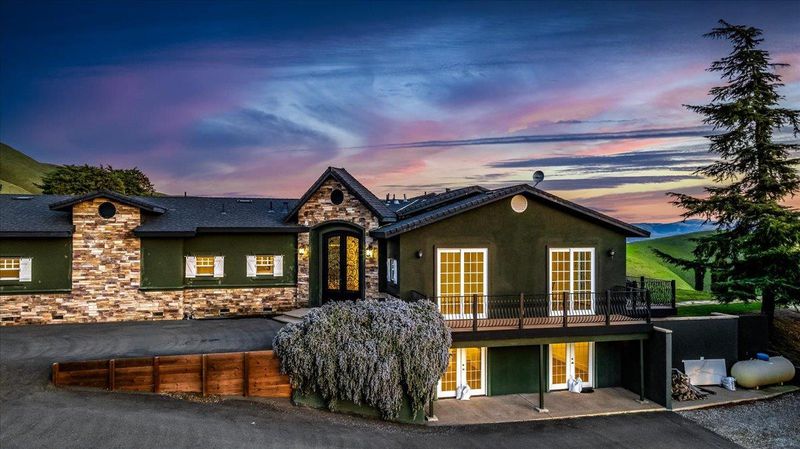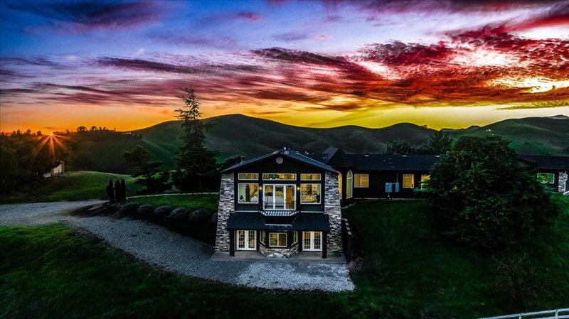 Set across 20 acres of rolling Livermore hills, this custom estate captures sweeping panoramic views and a rare sense of privacy, where refined design and natural beauty come together. Renovated in 2021 with over $850,000 in premium upgrades, the home reflects thoughtful craftsmanship and modern sophistication. The expansive living area is anchored by a striking gas fireplace and framed by walls of glass that create a seamless connection to the outdoors, ideal for both relaxed living and elegant entertaining. The residence features five spacious bedrooms, a versatile bonus room with a wine cellar, offering flexibility for a variety of lifestyles. Two bedrooms on the lower level, paired with a fully equipped gourmet kitchen, provide an excellent setup for multigenerational living or a private guest retreat. A partially converted carriage house adds further versatility, well suited for a guest suite, studio, or creative space. Situated in the heart of Livermore Wine Country, the property presents the opportunity to cultivate a personal vineyard while enjoying a peaceful, scenic setting. Despite its sense of seclusion, the estate is conveniently located just minutes from I-580, downtown Livermore, and renowned local wineries, offering an ideal balance of privacy and accessibility.