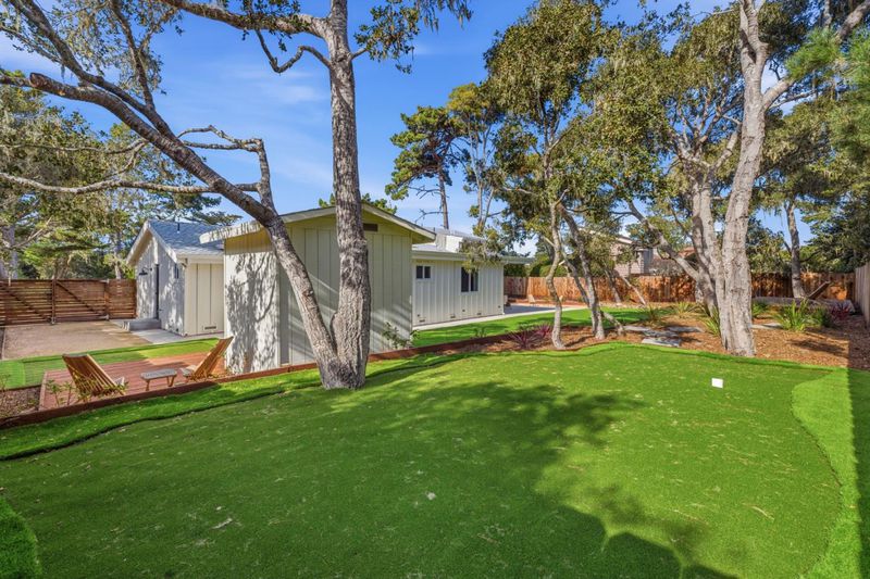 Welcome to 3141 Hacienda Drive, a completely reimagined 3-bedroom, 2-full bathroom single level Pebble Beach retreat, with a one bedroom, one-bathroom junior ADU above the garage. The residence was thoughtfully remodeled down to the studs with modern design and quality craftsmanship throughout. Set on a rare flat lot, this light-filled home blends indoor comfort with effortless outdoor living. The backyard has been transformed into a private oasis featuring low-maintenance turf and a custom putting green perfect for entertaining, relaxing, or sharpening your short game at home. Above the garage, a private in-law suite offers exceptional flexibility for guests, extended family, or a home office, creating a true multi-generational or income-producing opportunity. Every detail has been curated for todays lifestyle, combining timeless Pebble Beach charm with fresh, contemporary finishes. Ideally located near world-class golf, coastal trails, and all that the Monterey Peninsula has to offer, this home delivers both luxury and livability in one remarkable setting.