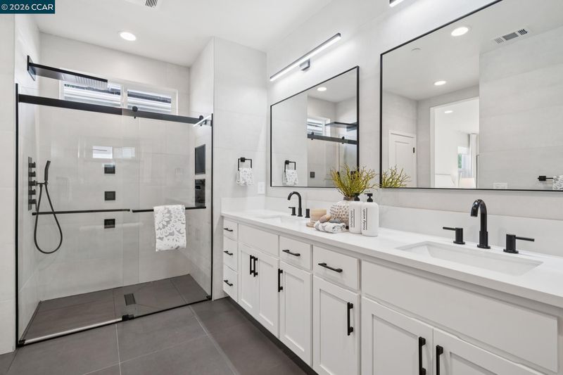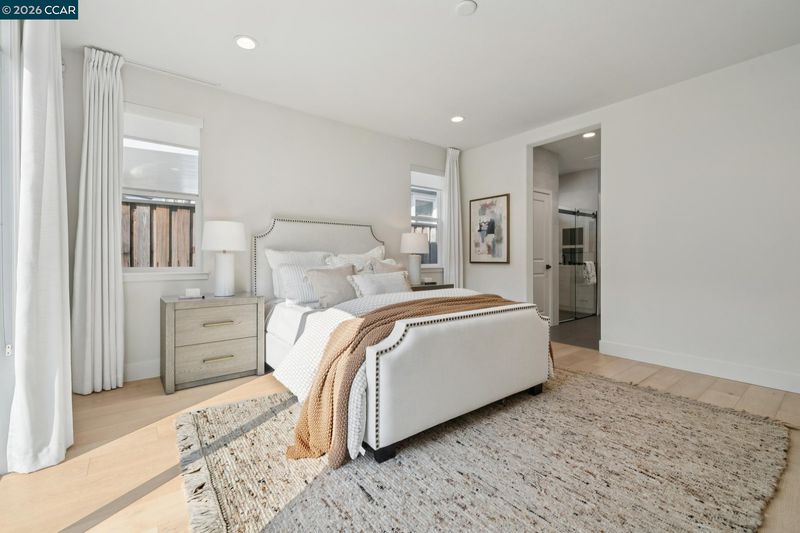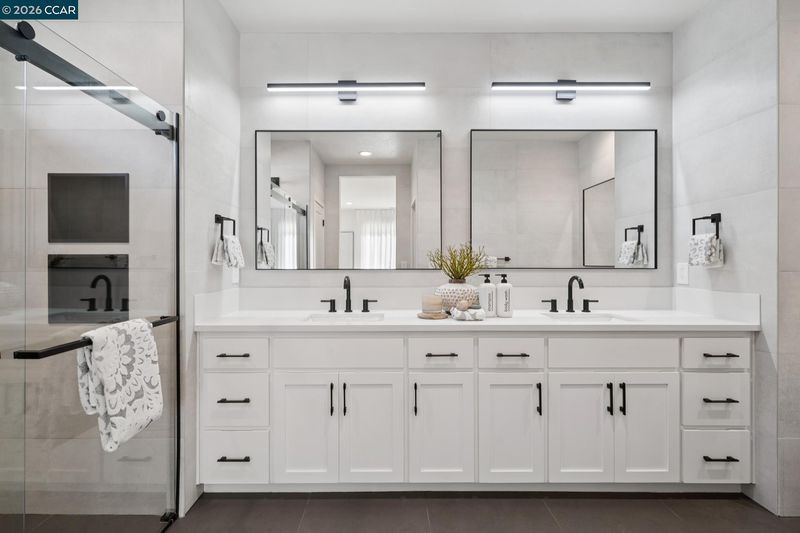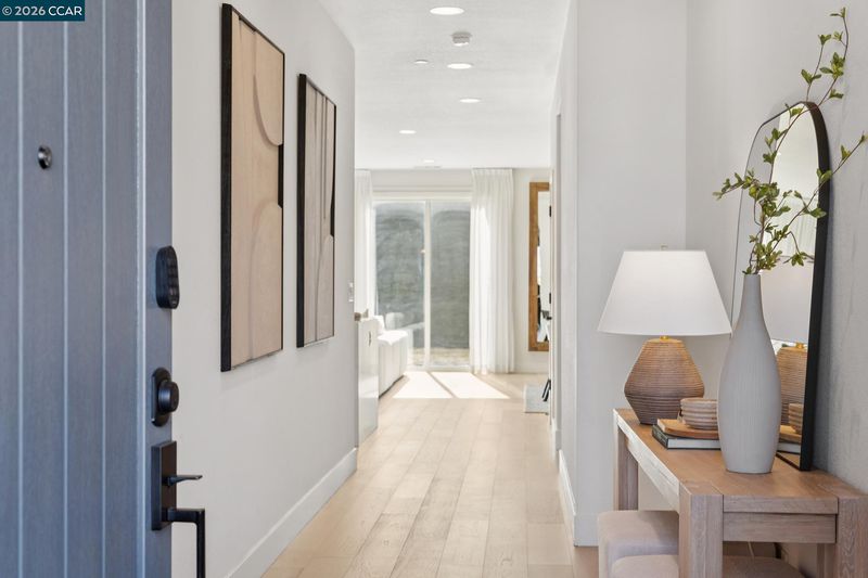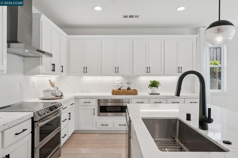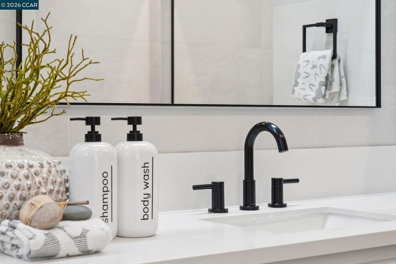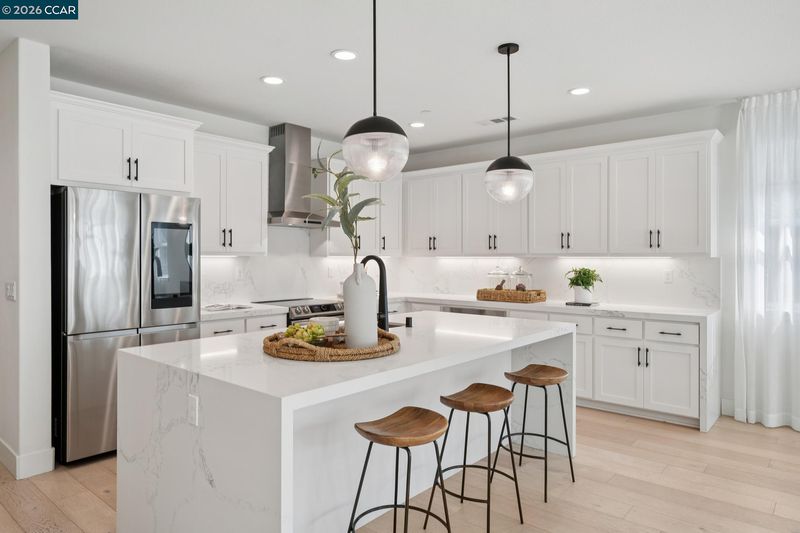 Exquisite home almost newly built and completely renovated with designer touches throughout. Easy-living, single-level floor-plan with an open concept. The heart of the home is the Chef's kitchen featuring Calcutta quarts counters, island-breakfast bar with waterfall-edge, custom cabinets, a pantry, stainless steel appliances w/ wifi connectivity. All bathrooms renovated with porcelain wall tiles & flooring. European white oak engineered hardwood flooring throughout. 2 ensuite bedrooms: Primary bedroom has a walk-in closet and huge spa-like bathroom - and a jr. suite also with walk-in closet & private bathroom. All bedrooms (and living room) equipped w/ in-wall media boxes. Spacious living room showcases a 76" Dimplex Ignite electric fireplace. Additional features: tankless water heater, reverse osmosis water filtration, OWNED SOLAR, recessed lighting! Too many upgrades to list! Yard is a blank canvas waiting for your design. Situated in a lovely neighborhood close to shopping, restaurants, parks, schools, freeway, and only 4 miles to BART. Open Sun 1-3