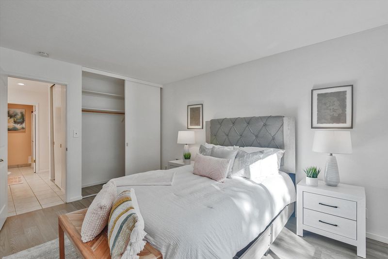 Exceptionally private 1BR retreat with treetop views just three blocks from the beach. Tucked on the second floor and set back from the street, this serene home feels like living above it all - filtered views of the Oakland Hills and Alameda rooftops through mature greenery create a rare sense of calm and seclusion. A covered balcony extends the living space outdoors - perfect for morning coffee, evening wine, or simply enjoying the peaceful outlook. The airy layout is welcoming and efficient, featuring an updated kitchen with a full wall of cabinetry for exceptional storage and a charming dining area for everyday meals or entertaining. The spacious bedroom offers tranquil views and privacy. A large vanity area includes two generous closets and is conveniently separated from the bathroom with a shower-over-tub combo - ideal for guests and daily routines. Generous windows bring in soft natural light throughout. This well-run community includes a pool, dedicated parking, and extra storage. Walk three blocks to the beach, explore Crown Memorial Beach and Crab Cove State Parks, or bike to Webster Street’s shops and restaurants. A rare blend of privacy, comfort, and coastal convenience in a prime Alameda location.