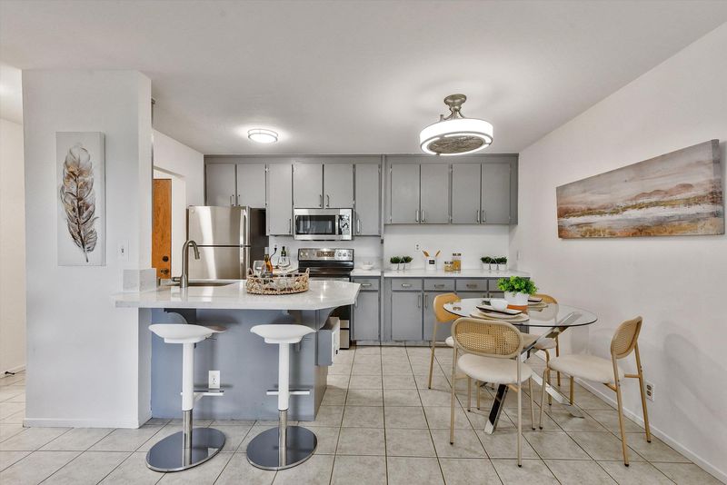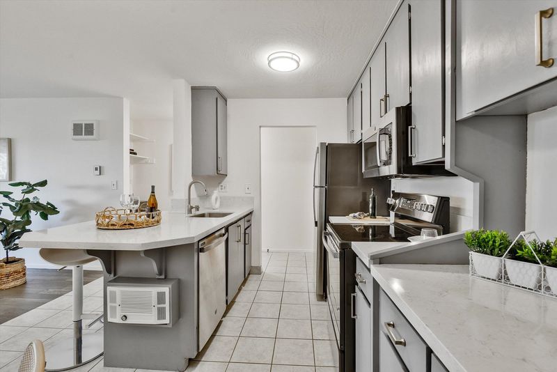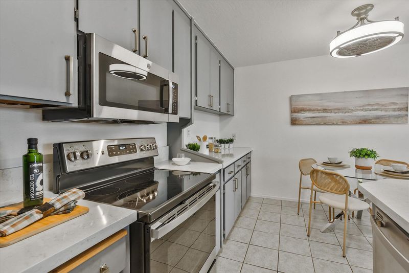 - Dishwasher, Electric Range, Refrigerator, Breakfast Bar, Counter - Solid Surface, Electric Range/Cooktop, Kitchen Island, Updated Kitchen