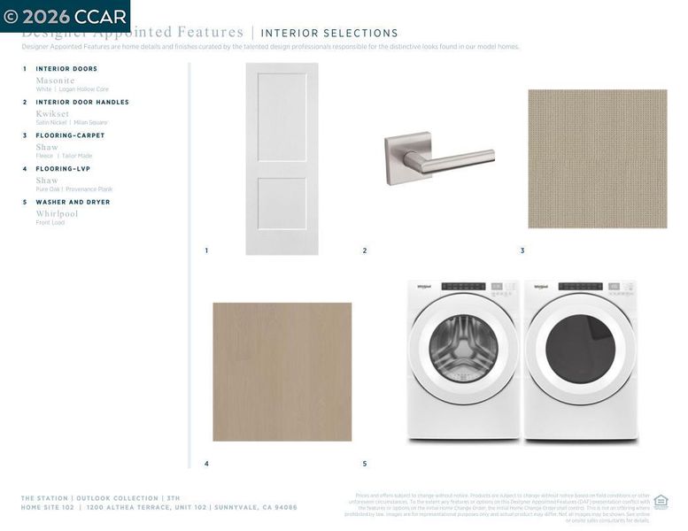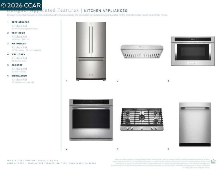 Discover luxury living in the heart of Silicon Valley. New Condos in Sunnyvale, Outlook at The Station features a sought-after location that puts you close to every want and convenience. This 3TH two-story poplar home design. Upgraded contemporary metal stair rail. An impressive kitchen with Energy Star KitchenAid stainless steel appliances, shaker style modern cabinets, quartz countertops with designer tile backsplash, sizable pantry, and a large center island. Direct access to a covered patio from the great room allows endless outdoor relaxation. Upstairs, primary bedroom boasts a private covered balcony, an expansive walk-in closet, primary bath with dual-sink vanity and large shower. Spacious secondary bedrooms, one with a covered balcony. Second-level laundry with Whirlpool front load washer and dryer. Convenient reserved 2-car space with a pre-wire plug for electric car charging. Resort-style amenities include pool, indoor/outdoor lounge area, fireplace, dog wash, dog park, co-work mezzanine, entertainment lounge, fitness center, courtyard, playground, walking paths and expansive lawns. Vantage At The Station is located near Santana Row, Valley Fair Mall, Shopping Centers. Close to VTA Light Rail, Lawrence Caltrain and Bart. (photos not of actual home)