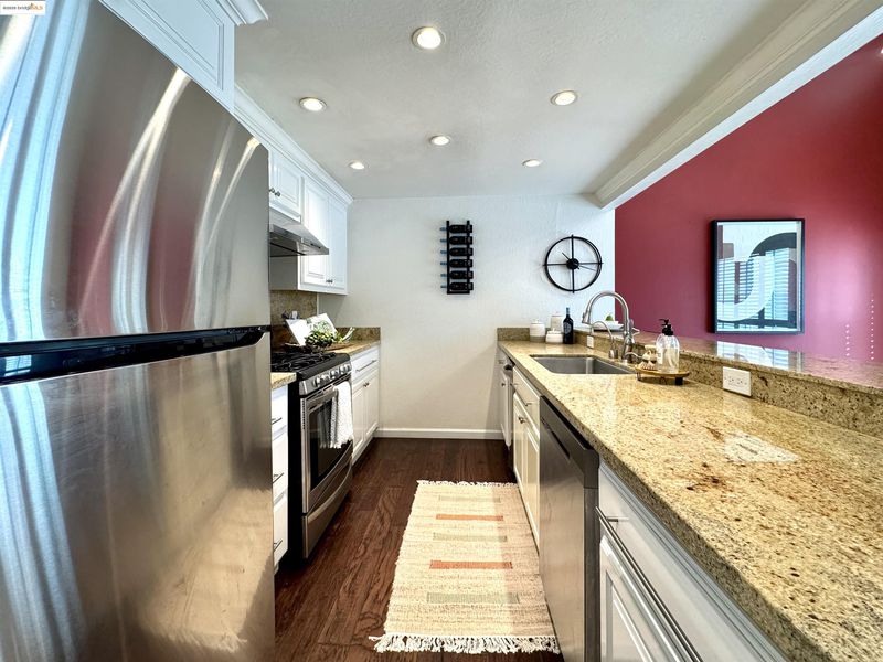 - Dishwasher, Gas Range, Free-Standing Range, Refrigerator, Gas Water Heater, Breakfast Bar, Stone Counters, Gas Range/Cooktop, Range/Oven Free Standing, Updated Kitchen