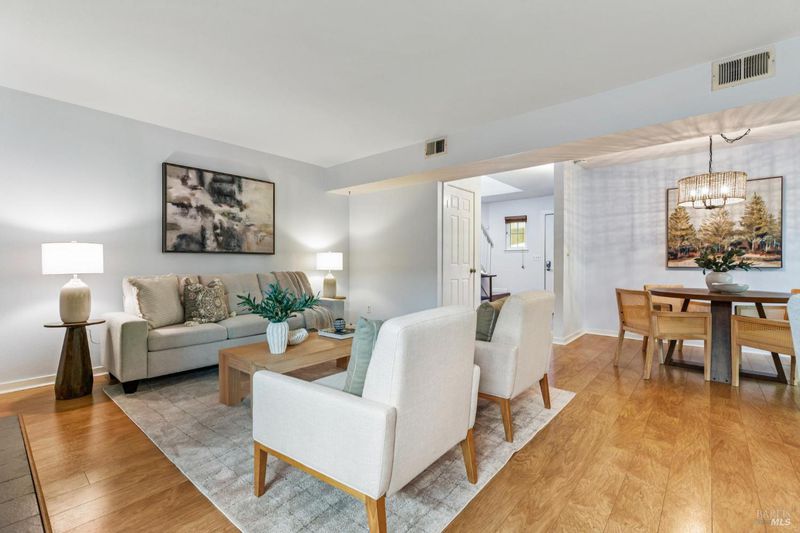 Located just moments from the Historic Sonoma Plaza, this inviting 3-bedroom, 2.5-bath townhome offers easy Sonoma Valley living with a thoughtful layout and recent upgrades. The main level includes a updated kitchen with modern details including quartz countertops, white cabinets, and stainless steel appliances. The dining island opens to the living room with a cozy fireplace and dedicated dining area. Sliding doors connect the space to a private brick patio, perfect for outdoor meals or relaxing evenings. Upstairs features three generously sized bedrooms, two full baths, and conveniently located laundry. The primary suite offers a private balcony and en-suite bath. One additional bedroom also enjoys balcony access, while the third features a solarium ceiling that fills the space with natural light and surrounding greenery. Upgrades include new HVAC, new windows, updated flooring, and fresh paint in many areas. A move-in ready opportunity, ideal as a full time home or Wine Country getaway. Enjoy nearby dining, shopping, and all Sonoma Valley has to offer!