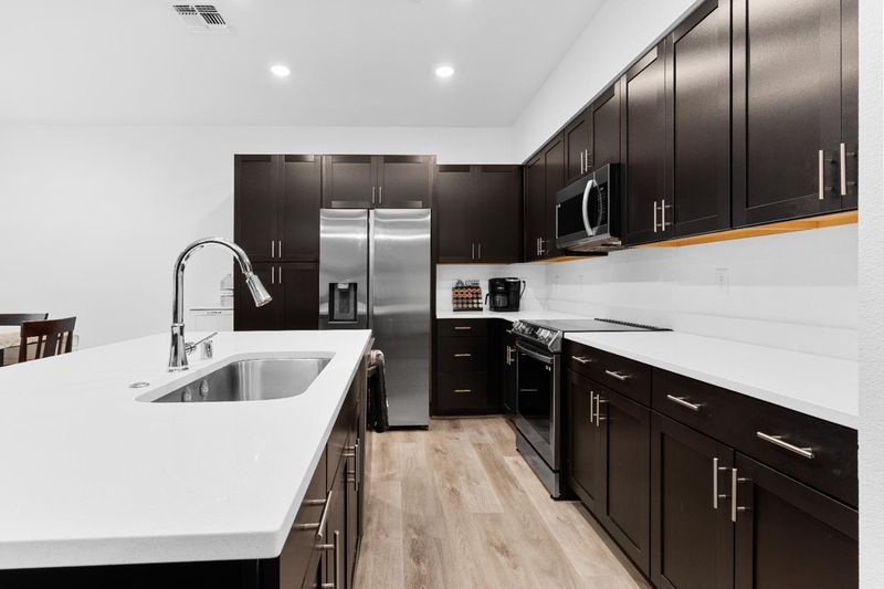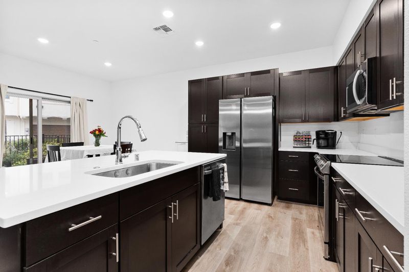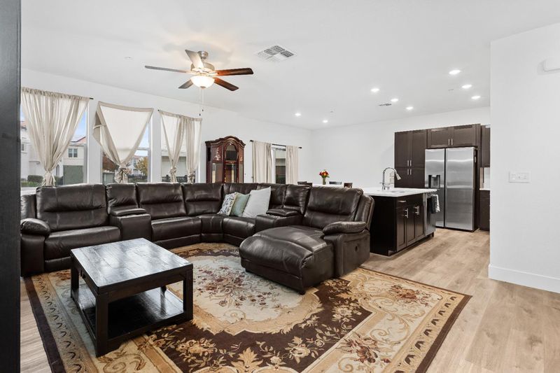 Step inside this beautifully crafted residence where modern design and everyday comfort meet in ideal harmony. From the moment you enter, you're welcomed by an open-concept floor plan enhanced by recessed lighting and an abundance of natural sunlight that fills the home. The kitchen is both stylish and functional, showcasing generous cabinetry, contemporary finishes, and a seamless flow into the Great Room, an ideal setting for entertaining guests, hosting celebrations, or simply unwinding. Thoughtfully designed with energy efficiency in mind, this home features fully paid-off solar, dual-pane windows, and dual smart thermostats, delivering year-round solace while keeping utility costs reasonable. Every detail has been curated to elevate daily living. The residence offers three generously sized bedrooms, two bedrooms complete with their own private full bathroom, an exceptional feature that provides privacy and convenience for all. The primary suite serves as a tranquil retreat, boasting ample space, and a truly impressive walk-in closet. A ground-floor bedroom located just off the main living area is perfect for guests, extended family, or multi-generational living, offering flexibility to suit your lifestyle. Additional highlights include an oversized tandem two-car garage with abundant extra storage, a convenient indoor laundry room with hookups, and a private outdoor patio perfect for enjoying morning coffee, dining, or relaxing under the evening sky. This low-maintenance, turnkey property allows you to enjoy more time living and less time maintaining. Situated within the highly desirable Artisan Square community near parks and just one mile from Natomas elementary and middle schools, this home offers the perfect blend of location and lifestyle. As one of the largest floor plans in the community, it delivers both functionality and ease with effortless style. Bright, and beautiful this exceptional property is a rare opportunity. Schedule your private showing today before it's gone.