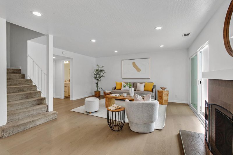 MUST SEE! Updated townhome in a highly desirable Sunnyvale community served by top-rated Cupertino schools. A beautiful courtyard entry opens to a bright, open floor plan featuring a spacious living room with tiled fireplace, recessed lighting, and large sliding doors leading to a landscaped backyard and deck. The modern kitchen offers Shaker-style cabinetry, quartz countertops, stainless steel appliances, pantry, and breakfast bar, with an adjacent dining area. The primary suite includes plush carpeting, sleek closet doors, and treetop views, complemented by an updated bath. Full size washer and dryer hook up. Unique spacious backyard. Attached 2 car garage with extra storage above the garage antic and more! Don't miss this!