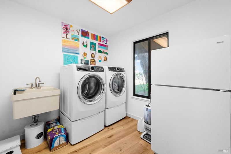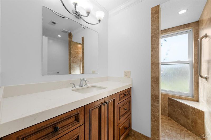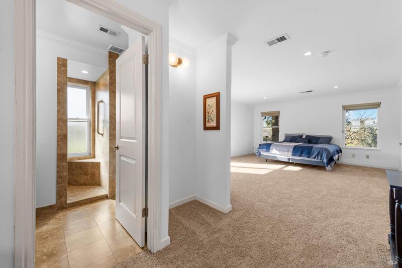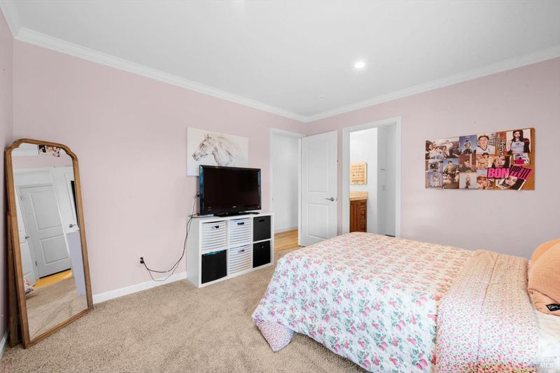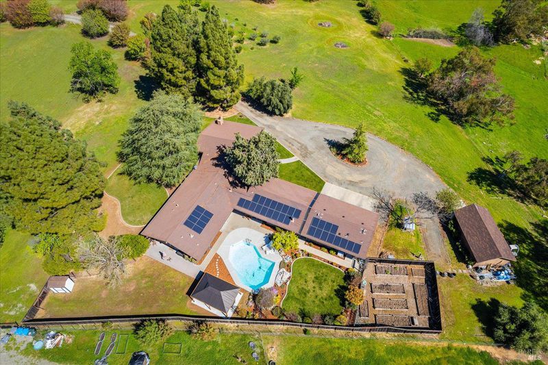 Welcome to this coveted Vacaville country estate nestled on 5 usable acres, offering the perfect blend of peaceful rural living and modern comfort with a spacious custom single-story home, a newly developed 720 sq. ft. ADU, a sparkling in-ground pool, owned solar, well water, RV parking and garage with workshop. Private tree-lined driveway leads to breathtaking panoramic views of rolling hills, surrounding a circular driveway that sets the tone for this incredible property. Inside, the main home features newly installed luxury vinyl plank flooring and carpet in the bedrooms, fresh interior paint, exposed wood beam vaulted ceilings, a stone fireplace and large windows that flood the home with natural light and views. Kitchen has an island with cooktop, double ovens, granite counters backsplash, pantry cabinets and large breakfast dining area with views. Massive bonus room is ideal for entertaining with a fireplace and sliding glass doors leading to the backyard retreat. Spacious primary suite has outdoor access, a walk-in closet and huge shower, while all additional large bedrooms provide crown molding and one with an ensuite bathroom. The ADU has a full kitchen, large living area, bedroom and full bathroom ideal for guests, extended family or rental potential. Home has newer dual-pane windows, recessed lighting, 2024 pergola, lawn and huge fenced garden area and endless views from every angle, making this a rare and versatile property.