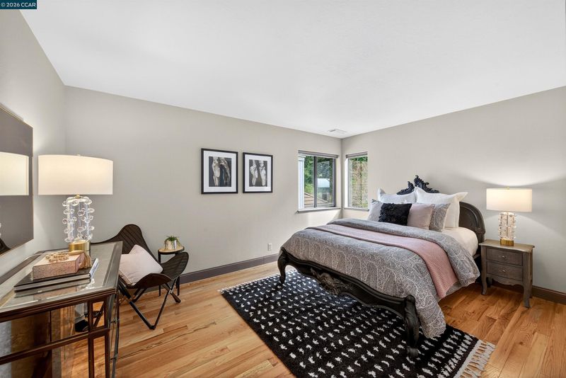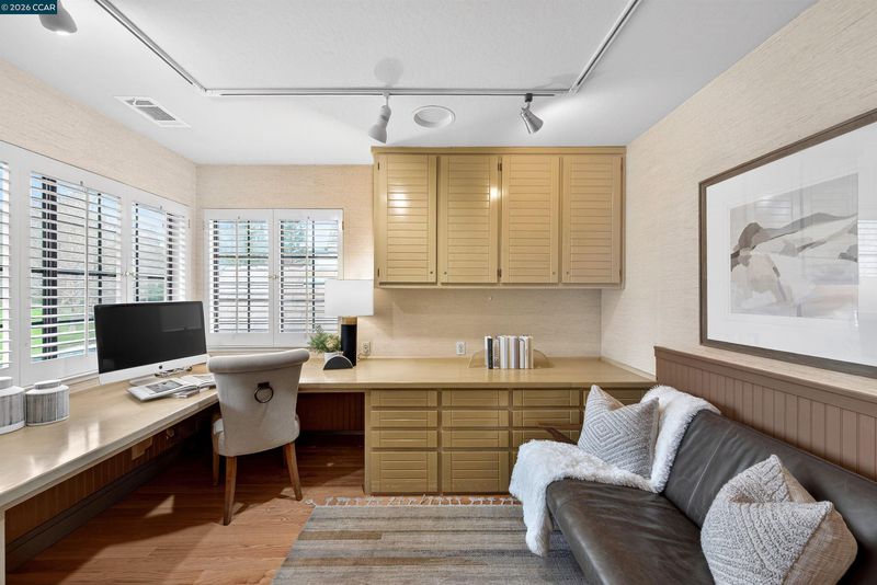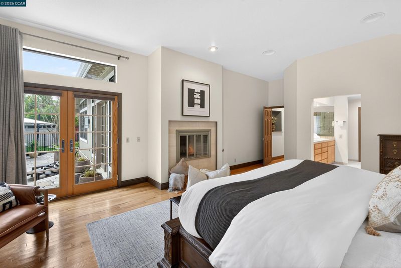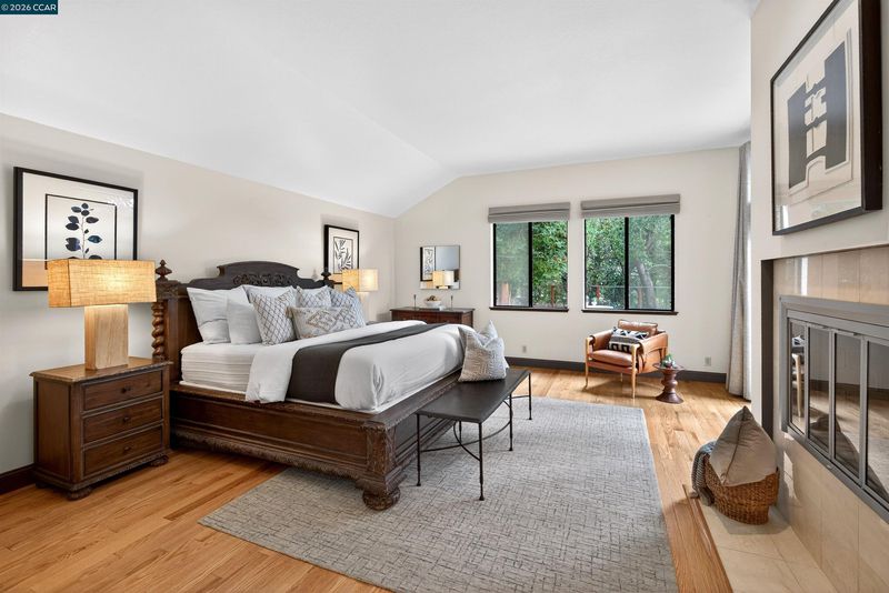 Sophisticated open-concept design & outstanding quality & craftsmanship shines in updated home on scenic Blackhawk cul-de-sac property w/frnt-facing golf course views & bkyd bordering greenbelt, creek. Ultra-pvt .27 acres. 3453+/-SF. 5 bds. 3 updated bths inclds main-level luxurious primary suite w/frpl, outdr access, walk-in closet w/Elfa organizers & main-level guest rm. Gated ctyd Zen-inspired entry. Vaulted ceilings. Clerestories. ¾-in oak plank flrs. Pella French/sliding drs. Fresh int/ext paint. Refinished Alder cabinetry thruout. Recessed lights. Redesigned staircase w/cable railing. Views from most rms. Formal living w/frpl, built-ins. Formal dining rm. Step-down fam rm w/frpl, stone surround, oak beam mantel. Updated galley-style eat-in kitchen w/KitchenAid & Bosch appls, garden window, slider to side patio. 3 bdrms + wkshop w/custom built-ins upstairs. Bkyd sanctuary. Patios. Pool. Spa. Gardens bds. Mature oaks & redwds. Laundry rm w/sink, cabinets. 2-car garage. Epoxy flr. Storage. Dual HVAC. New wtr htr. Nest thermostats. New ext fixtures. Gated country club location near 2 championship golf courses, clubhouses, tennis/pickleball cts, fitness ctr, spts complex. Near top-rated SRVUSD schls, Blackhawk Plaza, downtown, freeways, Mt. Diablo, Livermore Valley Wine Country.