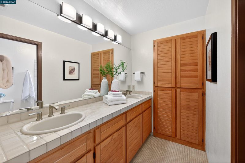 - Shower Over Tub, Split Bath, Stall Shower, Tile, Updated Baths, Double Vanity, Window